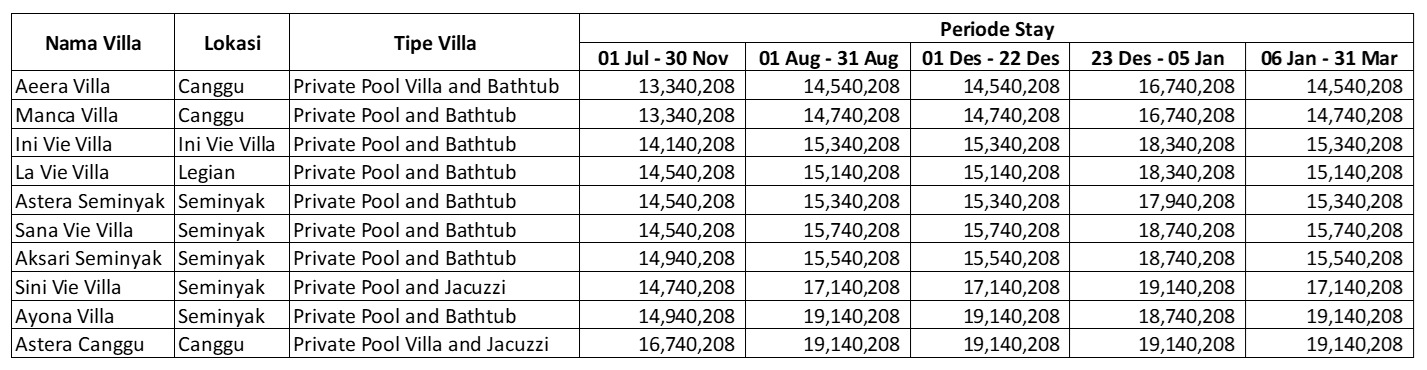harga termasuk tour 5 hari dan villa 4 malam