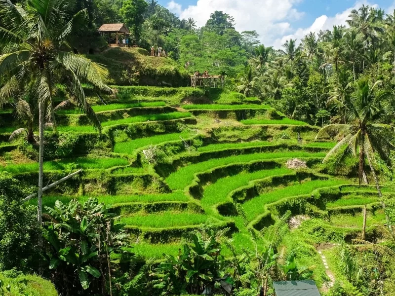 Teras sawah dirancang sangat indah dan tepat berada di tebing bukit. Di tempat ini Anda akan melihat petani Bali menanam padi di dataran miring dengan sistem irigasi. Anda akan menikmati panorama lembah yang indah dengan teras sawah padi dan pohon kelapa menghiasinya.